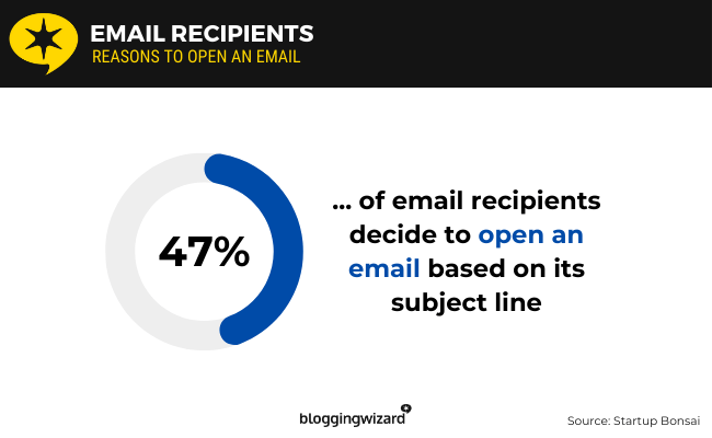 1. 47% of email recipients decide to open an email based on its subject line