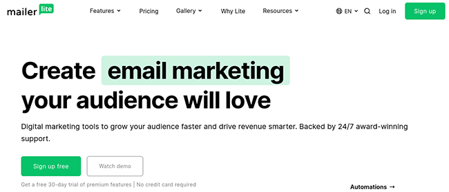 And that’s not all. On top of all the email stuff, MailerLite also comes with a landing page and signup form builder, email verifier, ecommerce features, etc. There’s even an integrated website builder that you can use to build your entire site from the ground up, complete with blogging functionality.