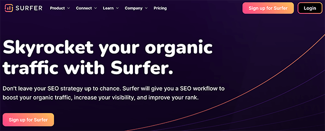 Surfer is a tool that helps you research, write, and optimize your content.