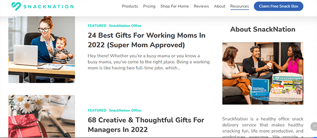 For example, SnackNation is a healthy office snack delivery service that makes healthy snacking fun, life more productive and workplaces awesome.