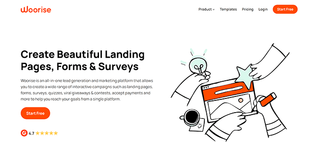 Woorise offers a range of customizable templates for you to play around and you can start generating leads in a few clicks.