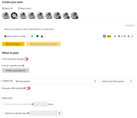 You can even set up certain posts so they eventually get reposted, and you can set up variations for reposted content so your audience doesn’t have to put up with duplicate content.