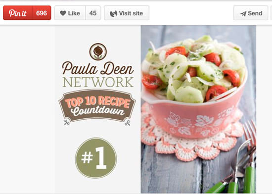 In fact, Paula Dean’s pin for her cucumber, onion and tomato salad is considered the epitome of the perfect Pinterest image.