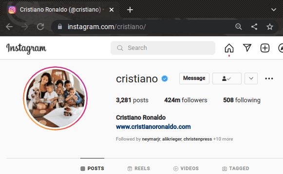 Here’s football star Cristiano Ronaldo’s Instagram profile as an example: