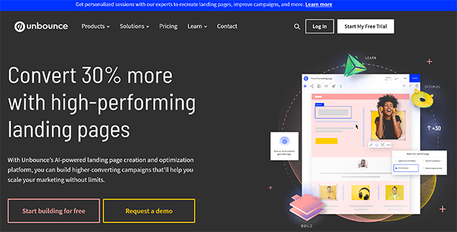 Unbounce is easy to use and allows you to boost conversion rates with A/B testing, dynamic text replacement, and Smart Traffic.